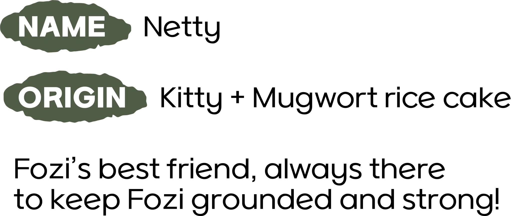 While Netty may come across as having a negative personality, it's really just a matter of being realistic and preferring safety. Netty consistently calms Fozi down and offers sound advice.